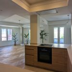 Spacious open-plan living-dining-kitchen area with indirect lighting and decorative molded ceilings.