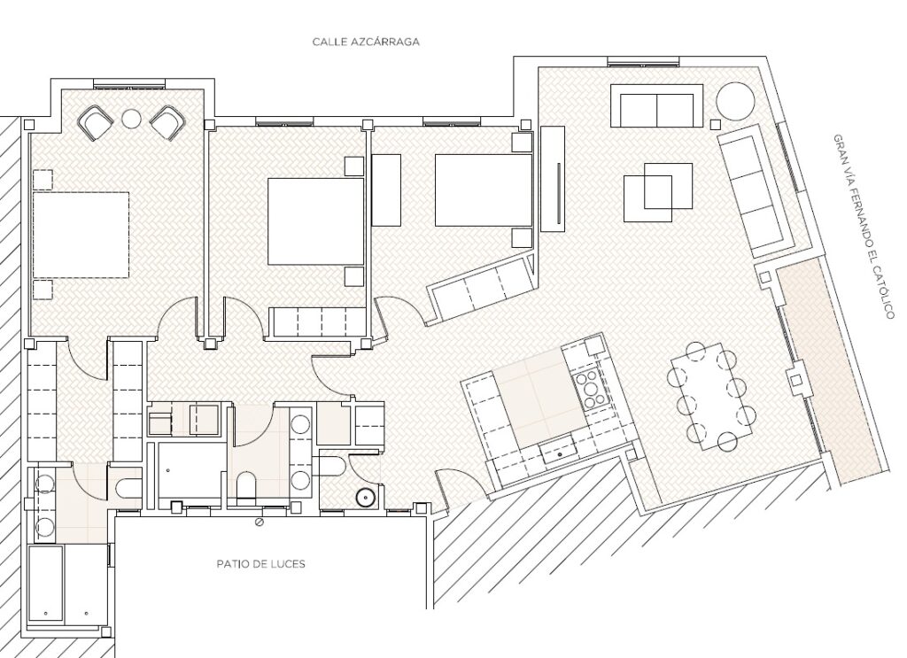 Spectacular designer home with premium finishes, located on one of the city’s main avenues with excellent proximity to the center of Valencia: on the corner of Azcárraga Street and Gran Vía Fernando el Católico (Petxina area).